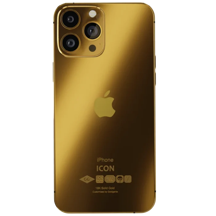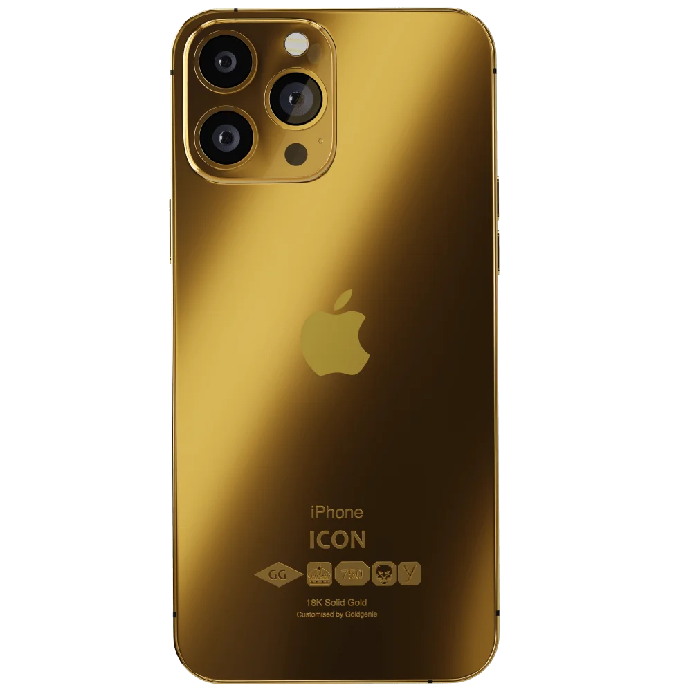The ICON Limited-edition 1-50 solid 18k Gold iPhone 15 Pro and Pro Max is customised using a layer of pure 18k solid Gold on the rear of the iPhone by our in-house Goldgenie artisans and then stamped with our London Assay Hallmark . Order now. 14-21 days delivery.