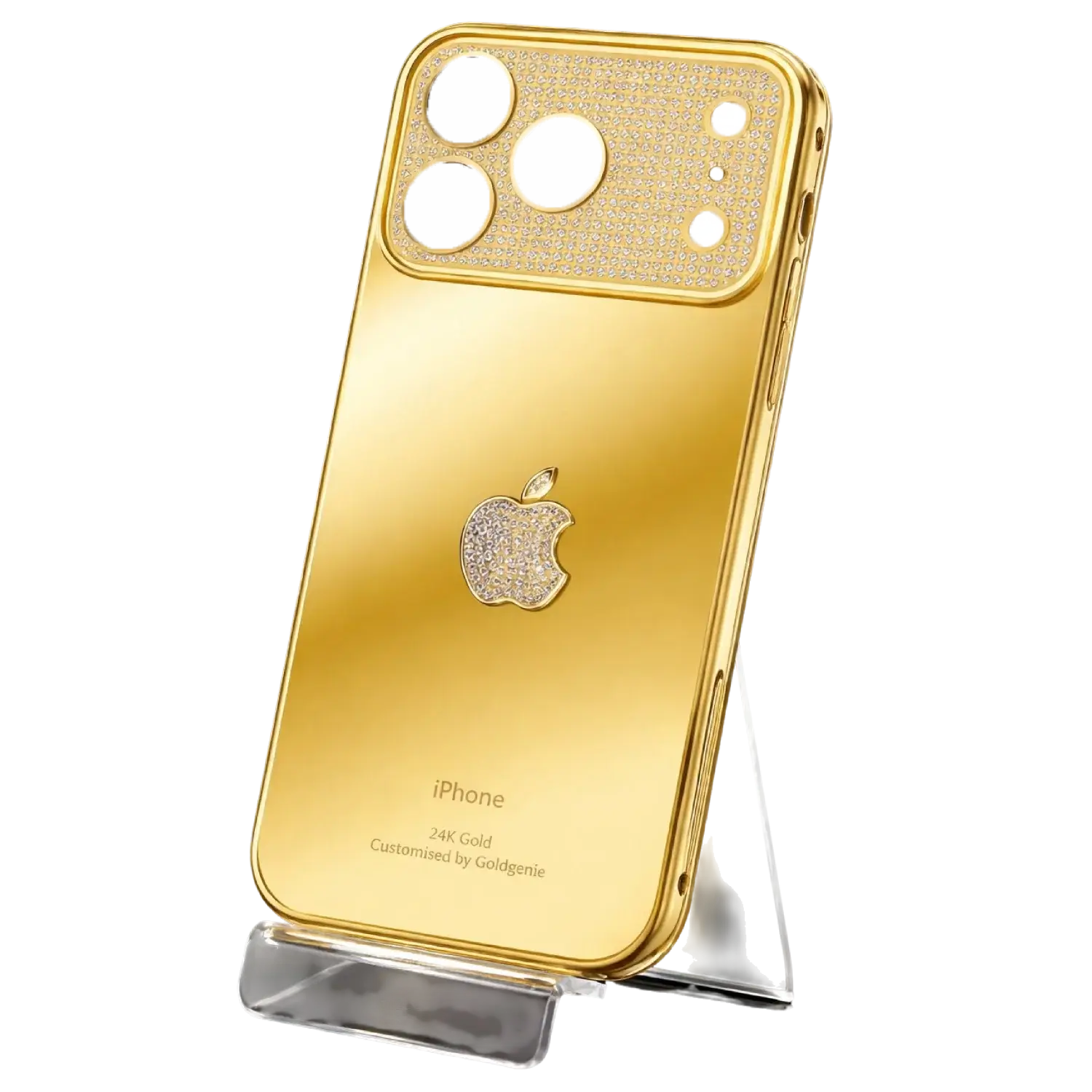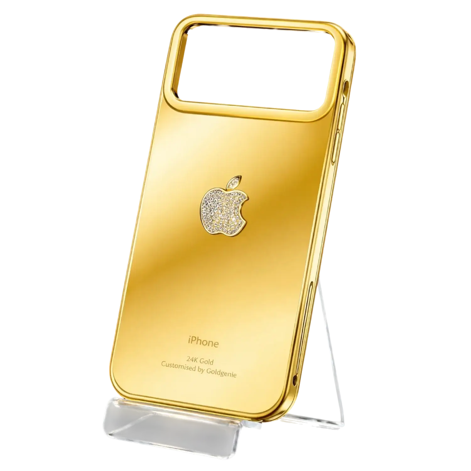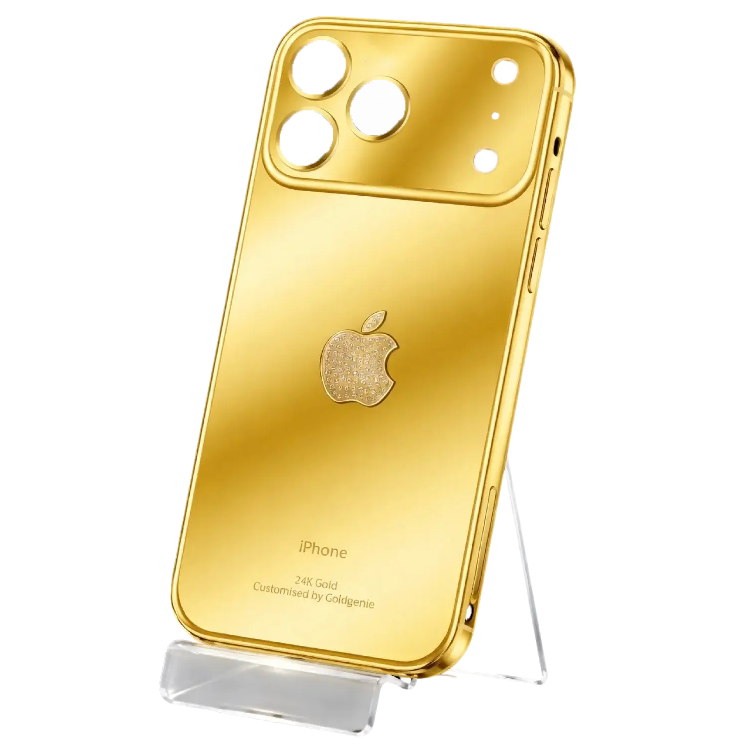 Transform your iPhone into a masterpiece of design and distinction with this 24k Gold iPhone 17 Pro and Pro Max custom side and back cover, meticulously crafted by Goldgenie — world-renowned for luxury customization since 1995.