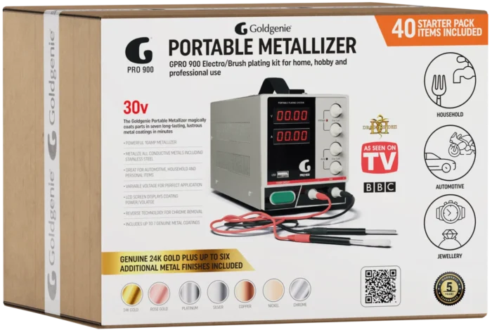 The Goldgenie Bright Nickel Plating Kit Pro 100 offers a sophisticated, portable electroplating setup focused on delivering a high-luster, hard-wearing nickel finish ideal for both decorative and functional applications. Equipped with a compact plating unit, conductive probes, clamps, and their premium Nickel Solution, the kit makes it straightforward to achieve a brilliant, reflective nickel layer. The system is designed to work with pre-activated surfaces (using Goldgenie’s Metal Activator) for strong adhesion and consistent results. With easy-to-follow instructions, even beginners can begin nickel plating quickly, while the quality and finish are solid enough for professionals restoring hardware, customizing accessories, or preparing items for further plating. Goldgenie positions the Pro 100 as a flexible tool — equally suited to creative hobbyists and small businesses.