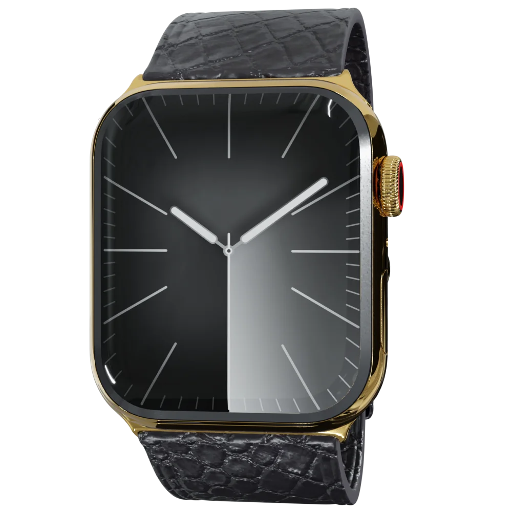 Gold Apple Watch 5 with Black Python Strap by Goldgenie® is no longer available. To view our latest designs in 24K Gold, Rose Gold, and Platinum, please visit: