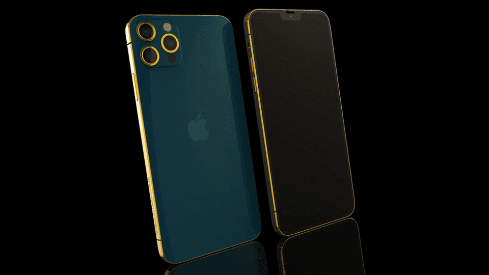 This iPhone 12 Pro Max range comes with original Apple coloured reinforced glass back is electroplated in 5 microns of pure 24k Gold, Rose Gold or Platinum.