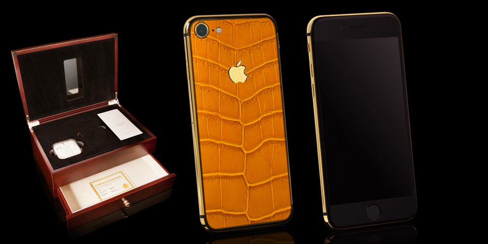 Goldgenie are now delighted to introduce this exciting addition to the existing luxury range of Apple products. The Crocodile iPhone 7 is customised in genuine Crocodile skin, precision cut and bonded ensuring a perfect seamless fit, making these Apple devices truly unique, in fact as unique as your fingerprint. All the skins used are CITES certified (the Convention on International Trade in Endangered Species of Wild Fauna and Flora). The iPhone 7 is SIM free and factory unlocked to ALL networks – meaning you can use the iPhone 7 on any network worldwide. All iPhones come with Total Armour Protection. All iPhones come with Total Armour Protection. Contents Luxury Cherry Oak Finish Box iPhone 7 (4.7″ screen) Elite Dimensions: 138.1mm x 67mm Apple EarPods with Remote and Mic Lightning to USB Cable 5W USB Power Adapter Documentation Total Armour Protection installed by master craftsmen at Goldgenie