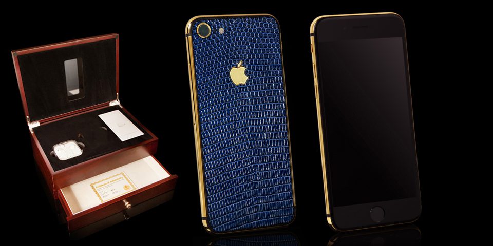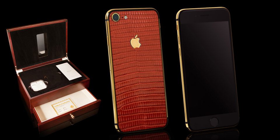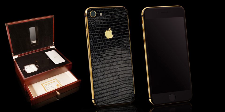 Goldgenie are now delighted to introduce this exciting addition to the existing luxury range of Apple products. The Lizard iPhone 7 is customised in genuine Lizard skin, precision cut and bonded ensuring a perfect seamless fit, making these Apple devices truly unique, in fact as unique as your fingerprint. All the skins used are CITES certified (the Convention on International Trade in Endangered Species of Wild Fauna and Flora). The iPhone 7 is SIM free and factory unlocked to ALL networks – meaning you can use the iPhone 7 on any network worldwide. All iPhones come with Total Armour Protection. All iPhones come with Total Armour Protection. Contents Luxury Cherry Oak Finish Box iPhone 7 (4.7″ screen) Elite Dimensions: 138.1mm x 67mm Apple EarPods with Remote and Mic Lightning to USB Cable 5W USB Power Adapter Documentation Total Armour Protection installed by master craftsmen at Goldgenie