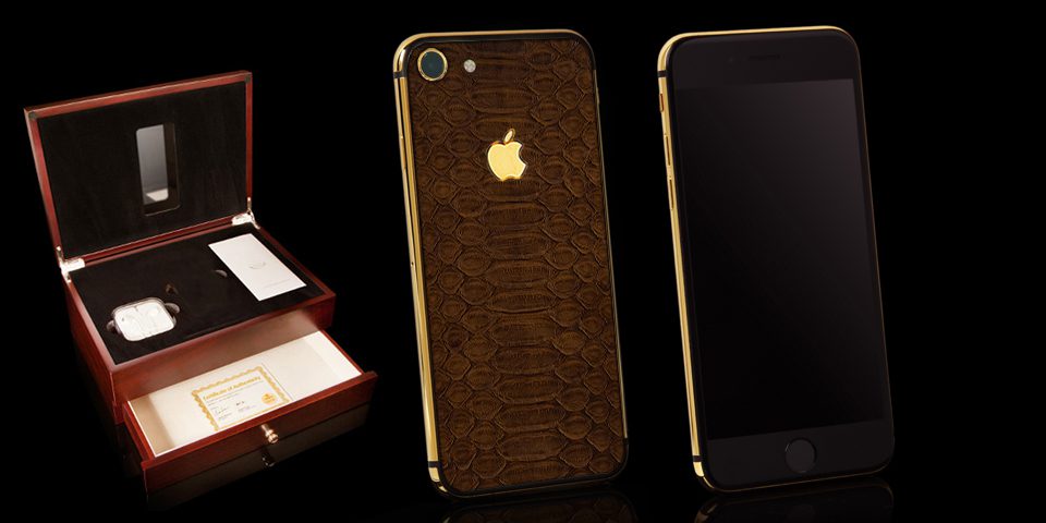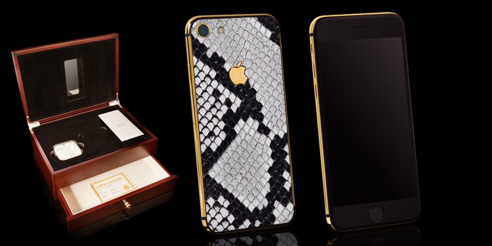 Goldgenie are now delighted to introduce this exciting addition to the existing luxury range of Apple products. The Python iPhone 7 is customised in genuine Python snake skin, precision cut and bonded ensuring a perfect seamless fit, making these Apple devices truly unique, in fact as unique as your fingerprint. All the skins used are CITES certified (the Convention on International Trade in Endangered Species of Wild Fauna and Flora). The iPhone 7 is SIM free and factory unlocked to ALL networks – meaning you can use the iPhone 7 on any network worldwide. All iPhones come with Total Armour Protection. All iPhones come with Total Armour Protection. Contents Luxury Cherry Oak Finish Box iPhone 7 (4.7″ screen) Elite Dimensions: 138.1mm x 67mm Apple EarPods with Remote and Mic Lightning to USB Cable 5W USB Power Adapter Documentation Total Armour Protection installed by master craftsmen at Goldgenie