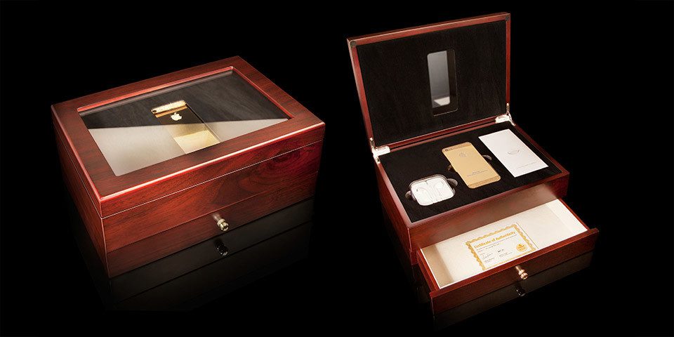 Details The NEW iPhone SE with the Swarovski sides, top, bottoms and logo embellished in either 24k Gold, Rose Gold or Platinum. The iPhone SE is SIM free and factory unlocked to ALL networks – meaning you can use the iPhone SE on any network worldwide. All Phones come with Total Armour Protection and Military Grade Encryption on texts and phone calls. Contents Luxury Cherry Oak Finish Box iPhone SE Swarovski Style Elite Bezel and Apple logo Apple Earphones with Remote and Mic Dock Connector to USB Cable USB Power Adapter Documentation Total Armour Protection installed by master craftsmen at Goldgenie ALL GOLDGENIE PHONES ARE SIM FREE AND UNLOCKED TO WORK ON ANY NETWORK IN THE WORLD