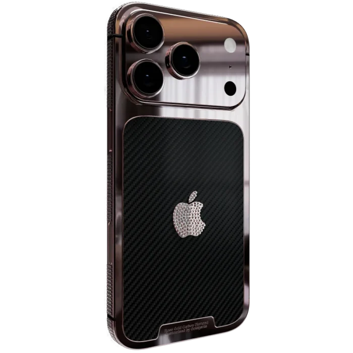 The Rose Gold Carbon Diamond iPhone 17 Pro & Pro Max embodies the perfect harmony of beauty and strength. Every detail is meticulously handcrafted — from the aerospace carbon composite frame that ensures resilience and lightness, to the soft rose gold finish that exudes warmth and prestige. Adorned with real VS1 diamonds delicately set into the Apple logo and bezel, each iPhone radiates brilliance from every angle.