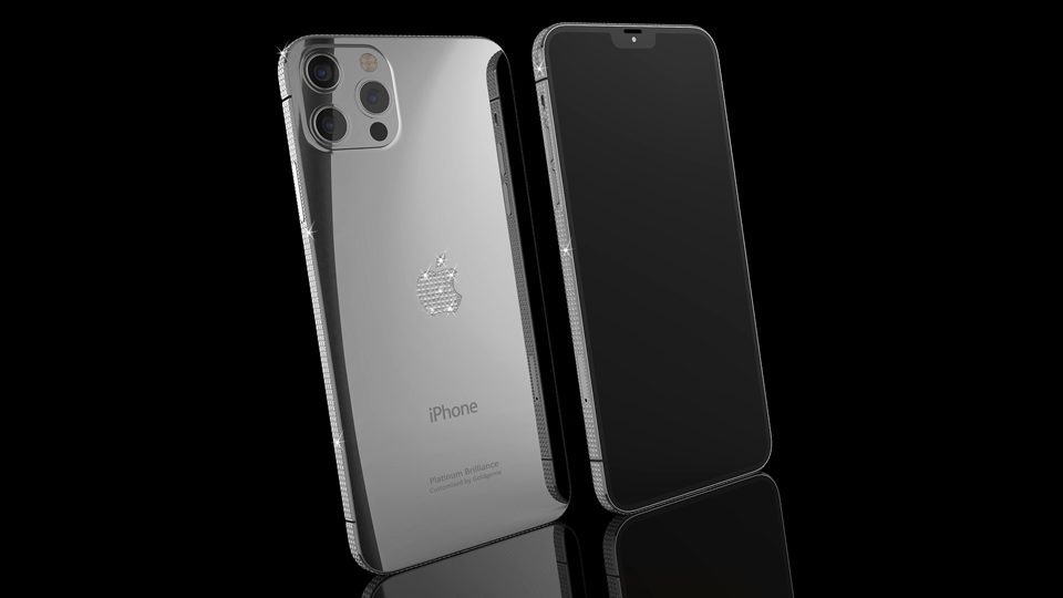 Limited edition luxury Swarovski crystal logo/bezel iPhone 13. Customised in 24k Gold, Rose Gold or Platinum. Order now. 7 days delivery.