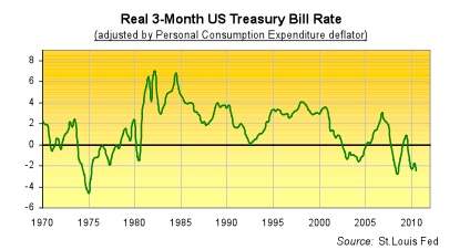 - The last 11 years have seen real T-bill rates sink alongside Federal Reserve rate and longer-term Treasury bond yields, averaging just 0.3% since Jan. 2000. Gold has risen 450% low-to-peak.