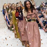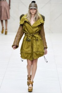 London Fashion Week is once again living up to the expectations of the fashion hungry society. It is captivating the eyes of the Starry Elite and shows such as ‘Burberry Prorsum’ is heading the front pages with its front row line up. Sienna Miller, Kanye West and the current face of the brand, Rosie Huntington-Whiteley sat alongside Rachel Zoe, Gemma Arterton, Andy Murray, singer Paul Weller and photographer Mario Testino. Christopher Bailey’s (Burberry) spring/summer 2012 show was held in Kensington Gardens. Bailey has focused his attention on making sure all the clothes will appeal to a number of different tastes/ preferences. Neutral tones were substituted for rich autumn shades such as rust, burnt orange, hunter green and mustard, which dominated alongside colourful abstract tribal-inspired print dresses. Burberry impressed its audiences with a variety of Trench Coats. The classic waterproof trench is an iconic piece of the Burberry line as it was created by Thomas Burberry. It appeared variously in slim-cut, buttery turquoise leather; in a feminine, cinched-in and full-skirted silhouette reminiscent of Christian Dior’s New Look shape in the 1950s; with big, poufy sleeves; and as cropped, hooded, unzipped parka-like sports jackets.