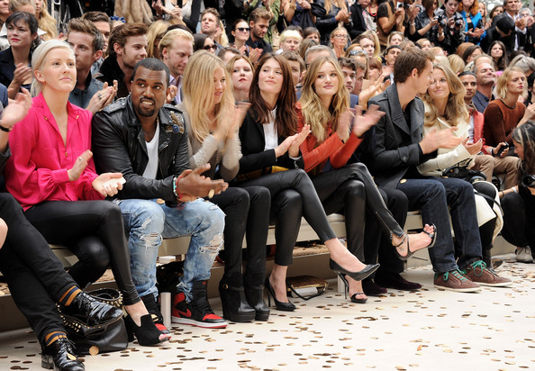 Kanye West not only found himself in the front row at the show, but also at forefront of the fashion gossip, rumors have emerged he will be launching his own line at Paris Fashion week. Unlike the colourful array offered by Burberry a source has stated that his colours will mostly include hues of Ivory and GOLD. Kanye was seen greeting Christopher Bailey after the Burberry Show, maybe Kanye was after some crucial advice as the date for his purported Paris fashion week show is rapidly approaching.