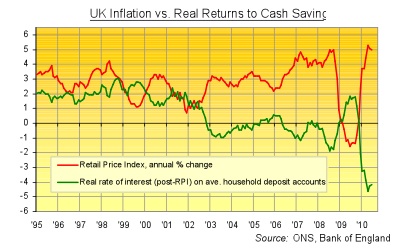 - #1. On the old Retail Price Index, UK household deposit accounts have lost value – after inflation – in 57 of the 120 months since July 2000. Gold priced in Sterling has risen by 332%;
