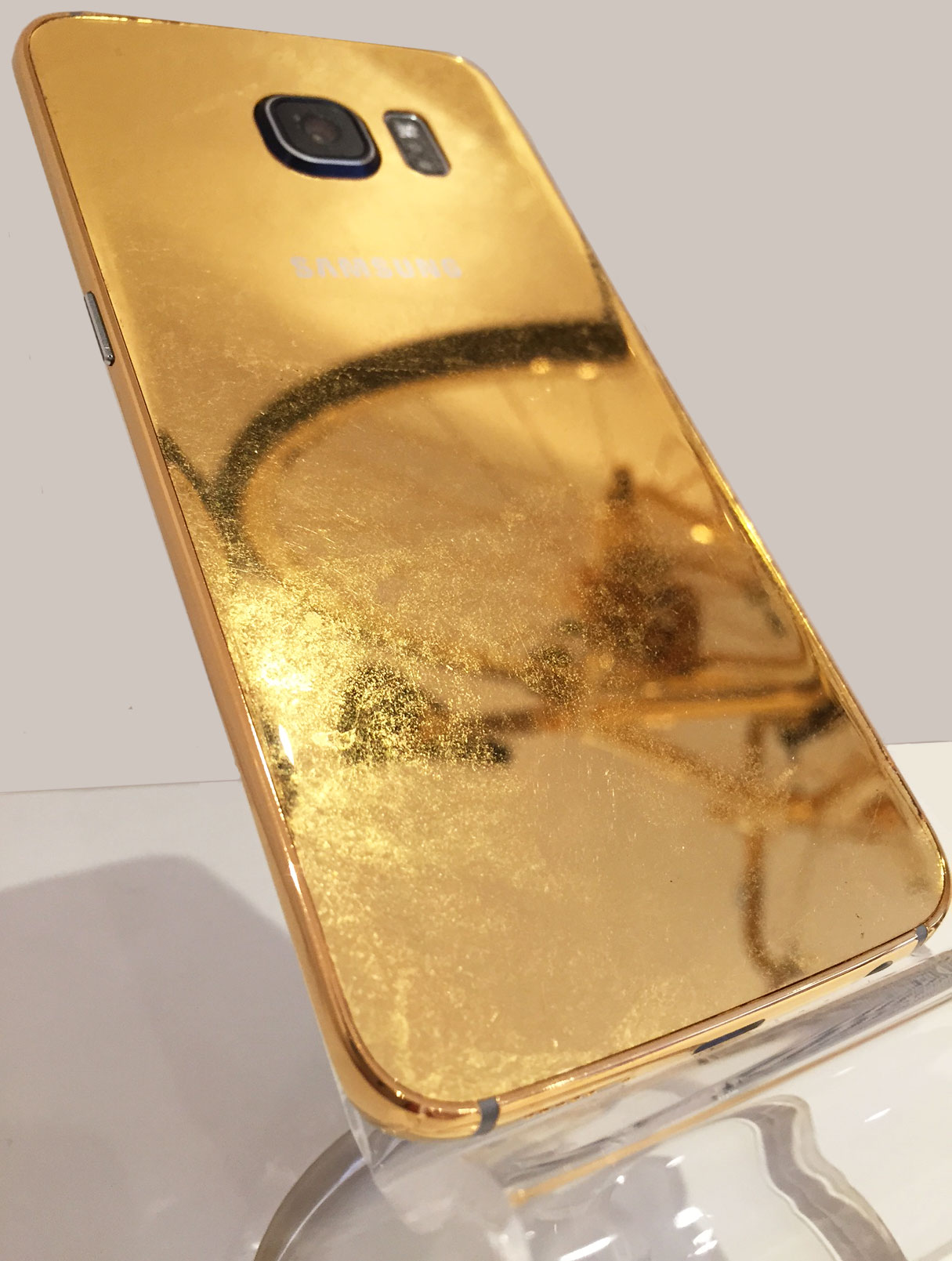 Normally at Goldgenie, our craftsmen add a high shine 24K Gold plated surface to our phones but with the Samsung S6 range, we’ve been diversifying our styles with the high-tech gold prism which disperses light across the phone for a futuristic hologram impact.