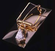 This solid 14ct gold mouse trap has a cheese shaped bait that is a huge diamond! If there was ever a royal mouse, then this would be the trap that should be used to catch it. I am not suggesting that all mice are rodents of course, think about Mickey and Minnie, Jerry, DangerMouse, Pinky and the Brain. I like those mice. This gold trap is another great creation from jeweller Sidney Mobell and there is a nice story behind it’s origin. The first was made for Joan Kroc, wife of McDonalds founder Ray Kroc. She wanted a birthday gift for her husband, whom she said already had everything in the world he wanted. So Mobell suggested a gold mouse trap. It was engraved ‘Happy Birthday, Ray. Thanks for catching me.’ Now that’s what I call original. Only five were made.