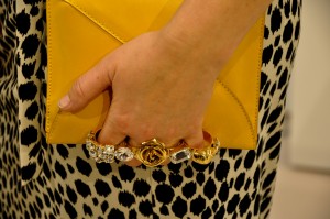 Ever talk yourself out of using that cute clutch purse for fear of loosing it or setting it somewhere? With this incredible, buttery soft yellow, jeweled knuckle hugger you won’t have to. It’ll fit your hand like a purse should and adorn your every finger. Maison Du Posh clutch purse made with Swarovski Elements.